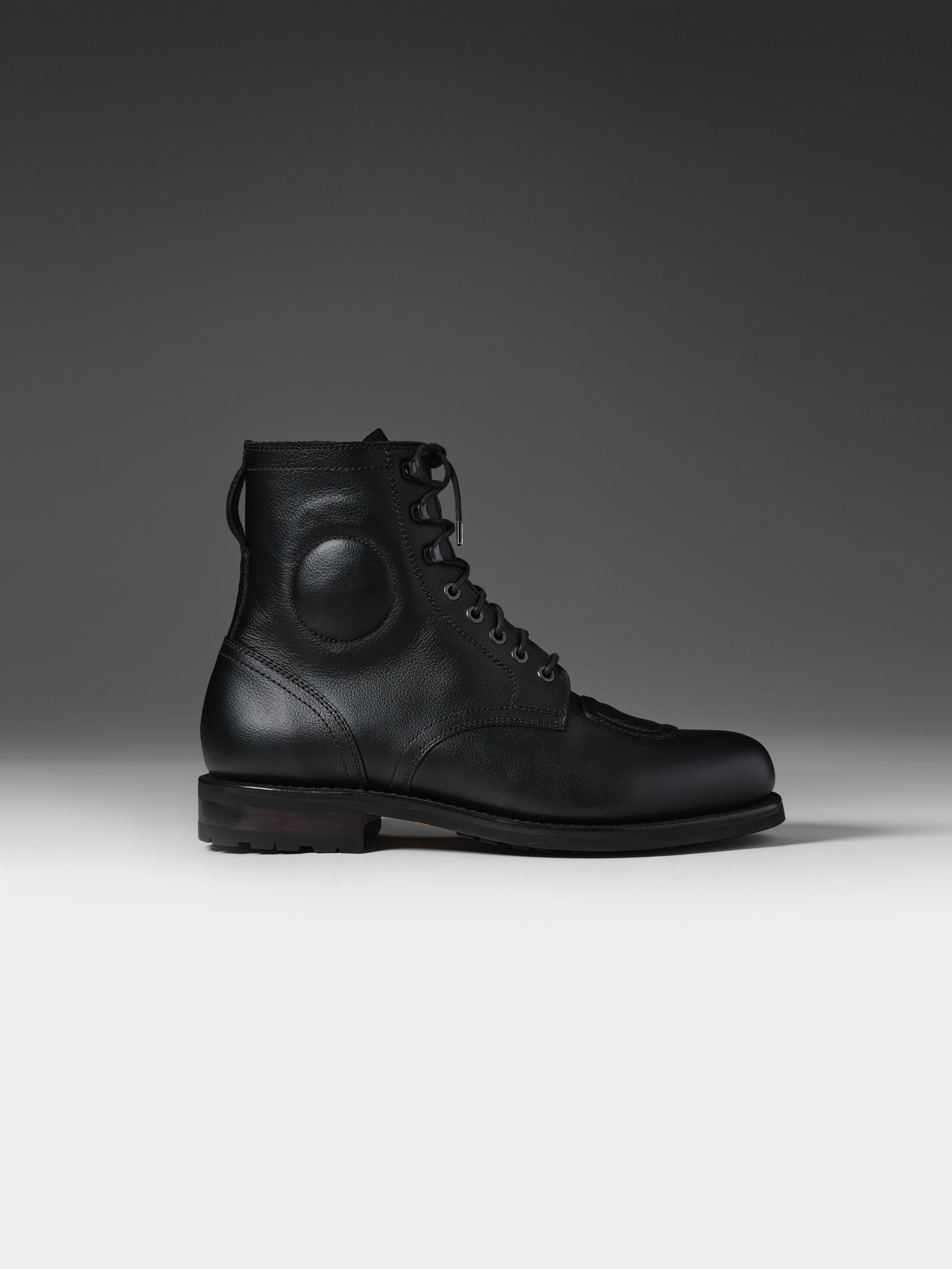 The Tioga Moto Boot is constructed around a set of water-resistant Spanish full-grain cowhide leather uppers with a Spanish calf leather lining and a padded leather tongue. The Tioga’s Goodyear welt construction allows it to be re-soled if the outsole wears down, allowing it to offer a literal lifetime of use — and making it a modern-day heirloom.
