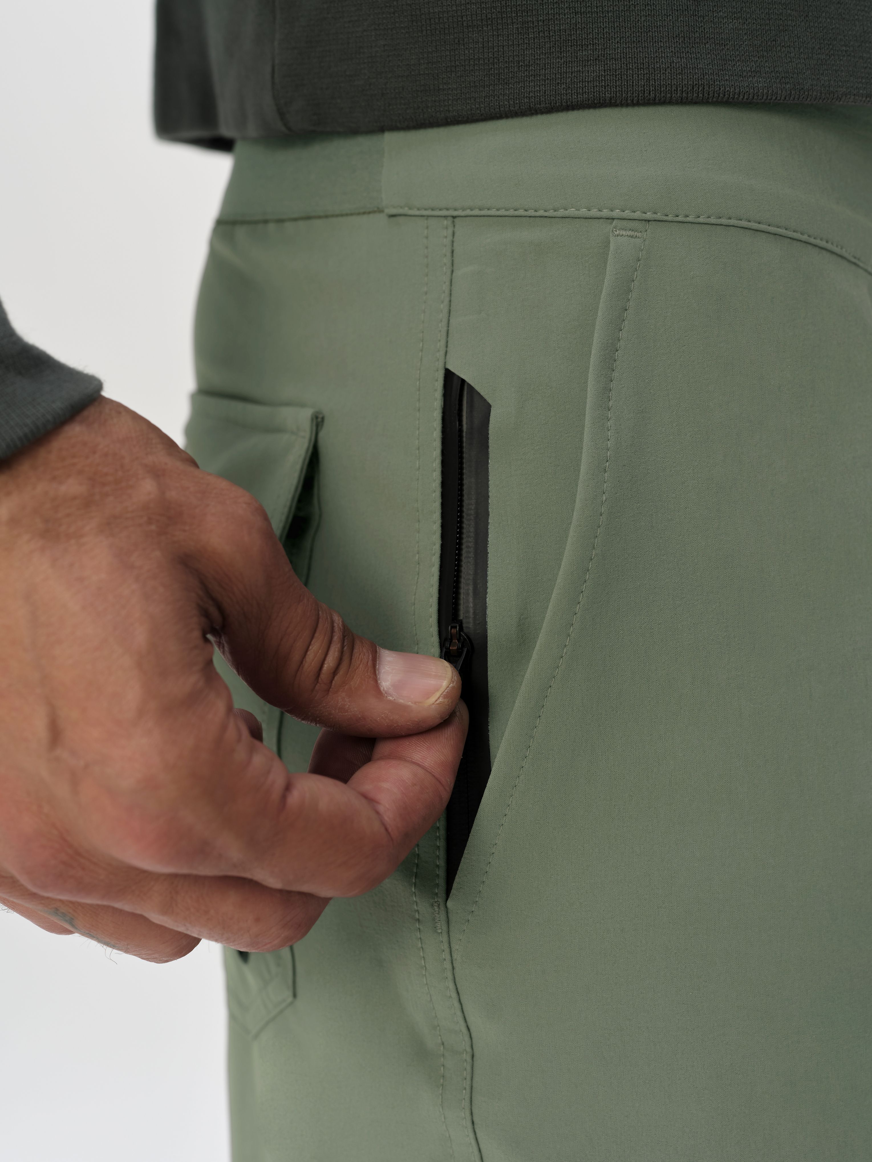 The Velo Short has been outfitted with a pair of field hand pockets, and a bonded on-seam phone pocket fortified via a AquaGuard zipper at the wearer’s right side. There’s also a back patch pocket secured via a storm flap, zipper closure, and snap button for added security.