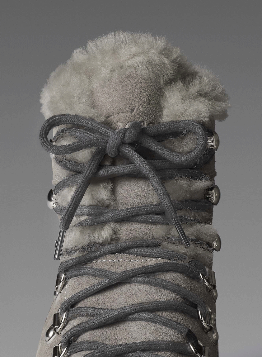 The W Dolomite Boot with Shearling Trim features metal eyelets and lacing hooks.