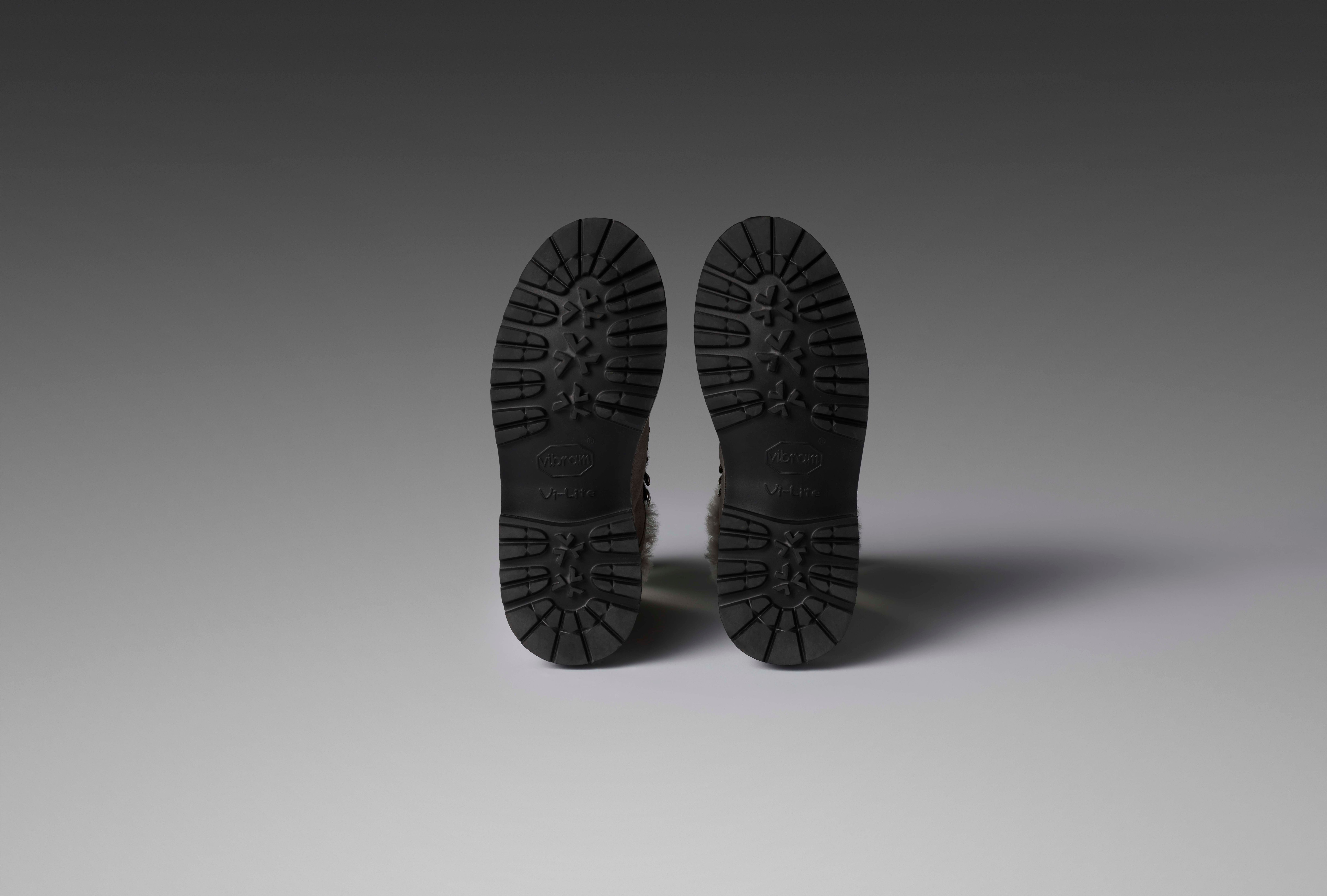 Handmade with 100% Italian leather, the boot features a shearling trim along the top of the boot and on the tongue.