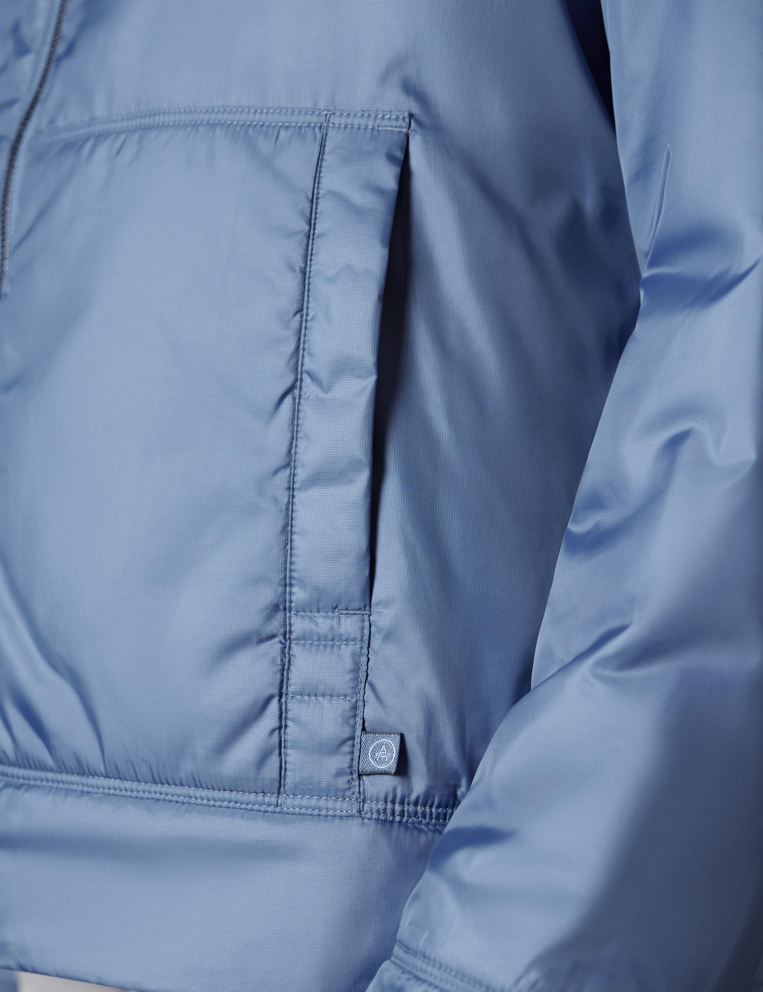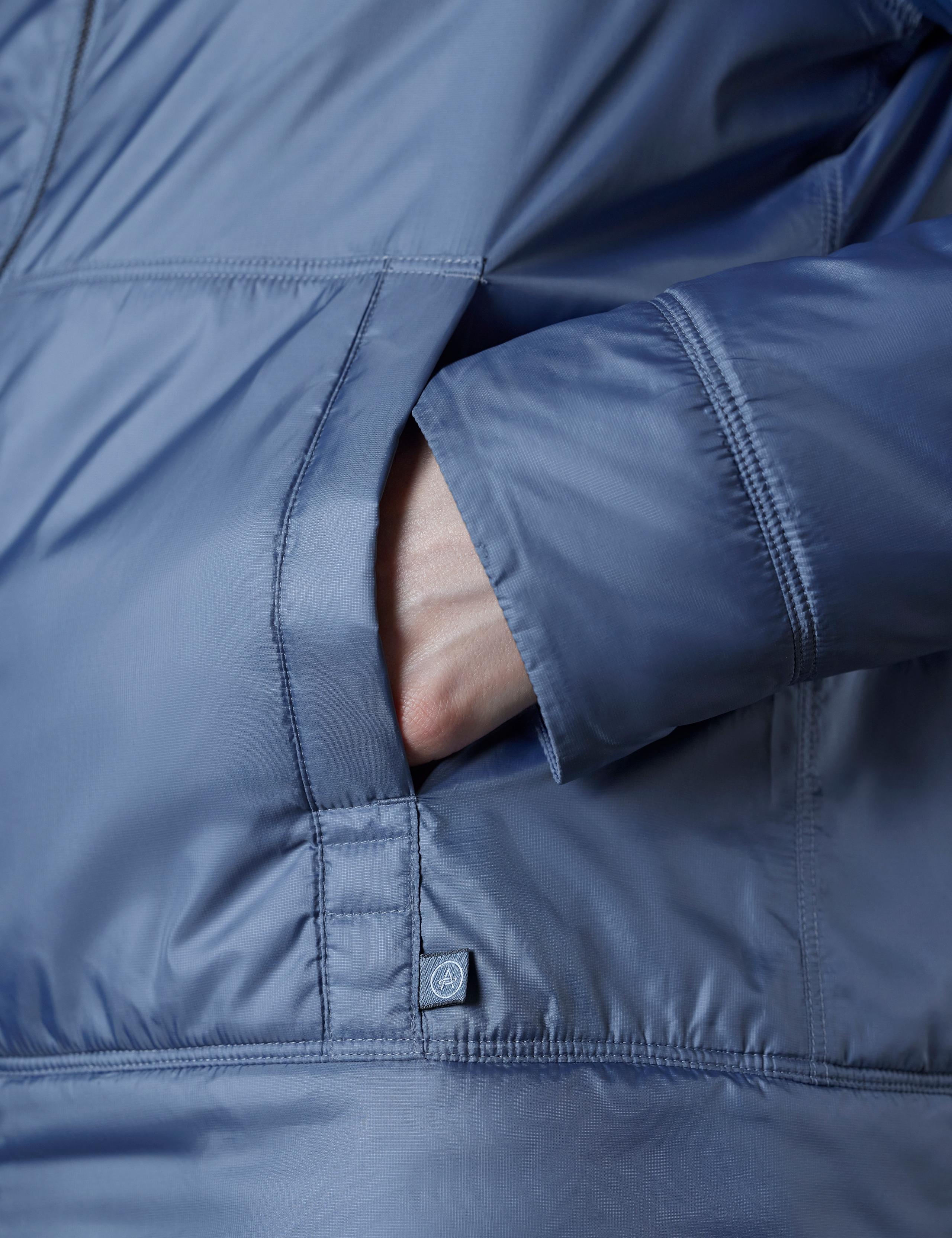 The Eco Space Hoodie is crafted from 100% recycled polyester ripstop fabric from Japan that’s treated with a PFC-free C0 DWR coating to repel rain and insulated with 60 GSM PrimaLoft® Bio™, made from 100% recycled, biodegradable fibers.