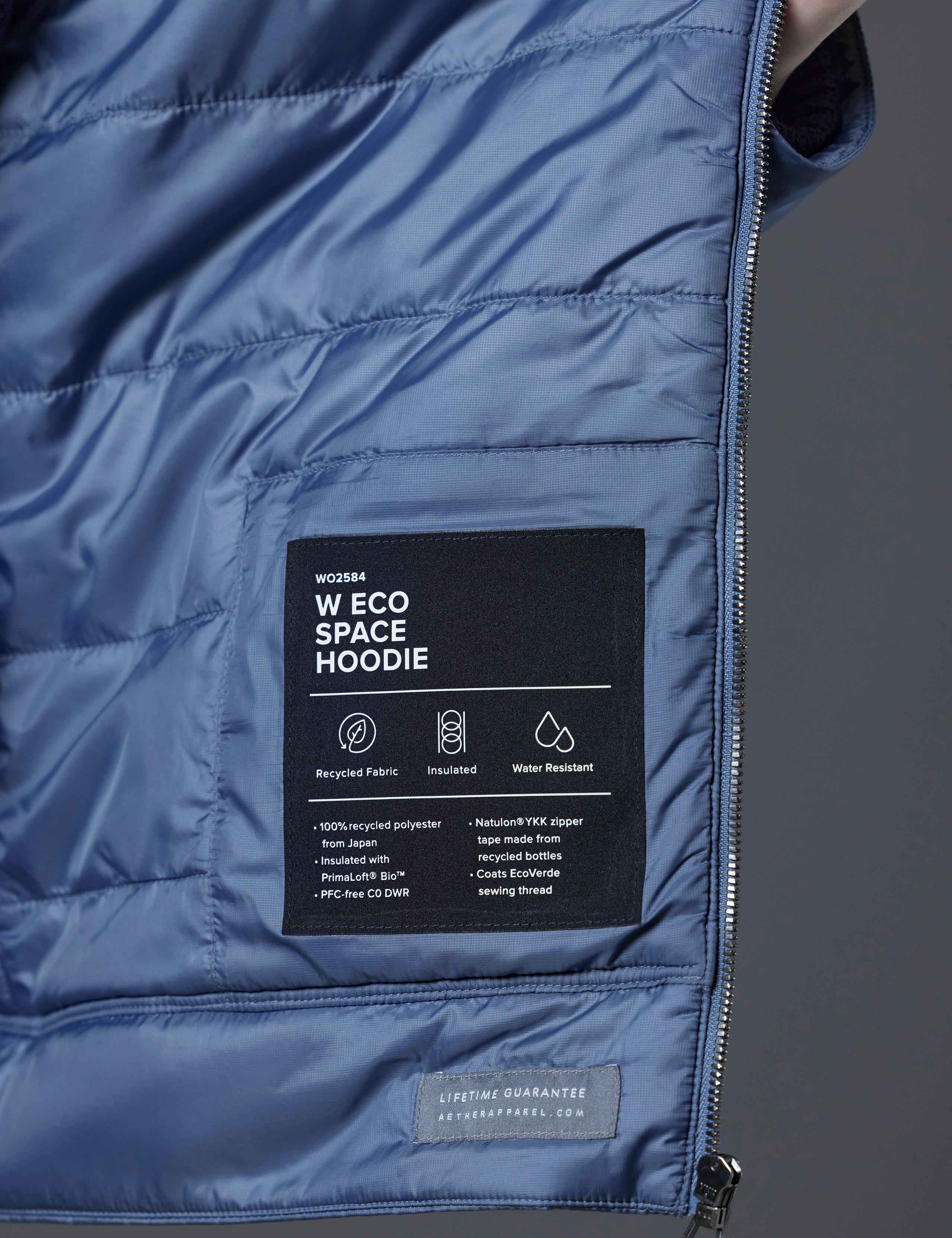 Incredibly lightweight and packable, the Eco Space Hoodie is one of the most versatile pieces we offer.