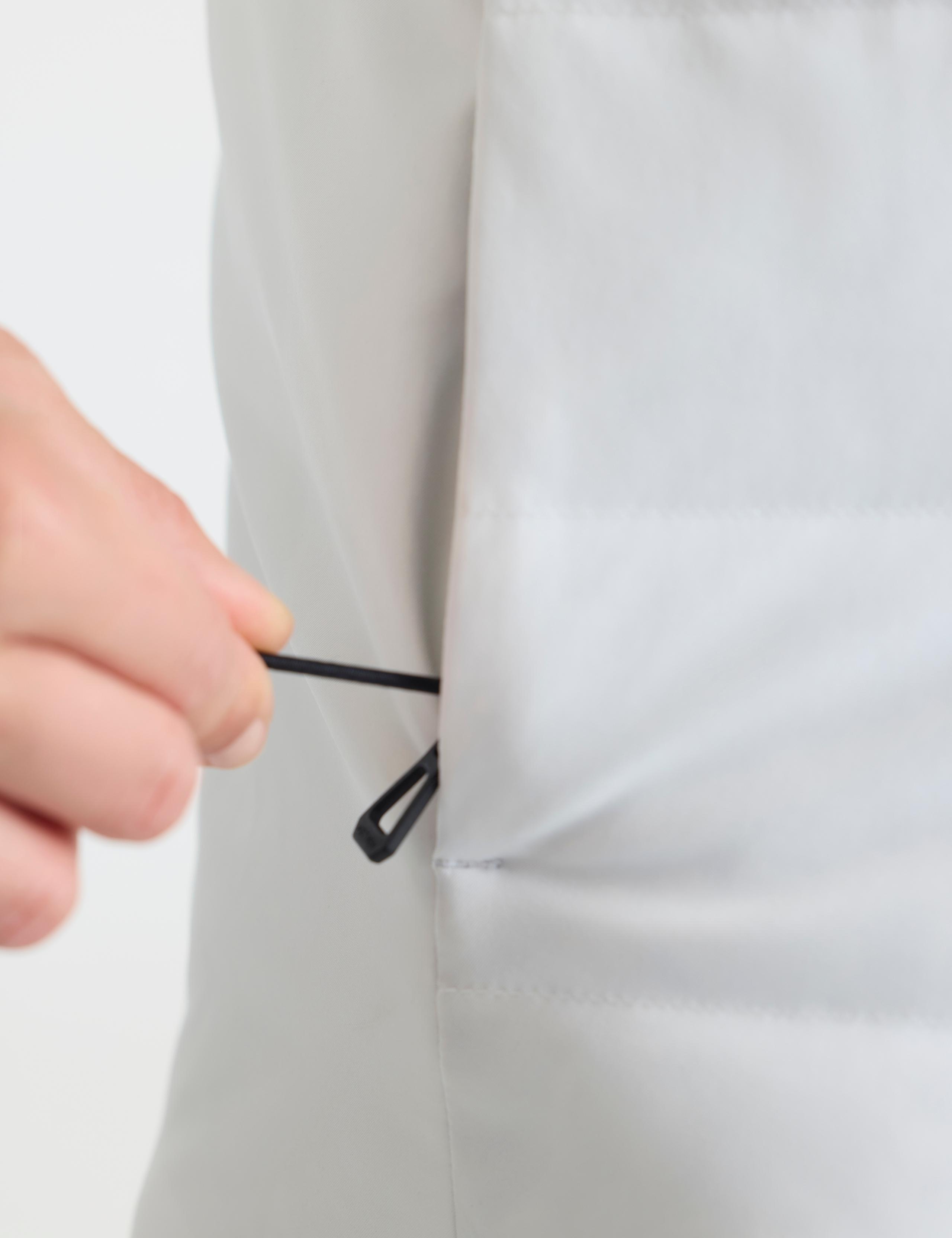 Equipped with brushed tricot pocket bags, the Nordic Jacket 2.0’s hand pockets also hide a bungee cord adjustment system along with Cohaesive® cord locks at the bottom sweep. Though it maintains a streamlined silhouette, the Nordic Jacket 2.0 manages to incorporate a surprising amount of secure storage into its design. This includes concealed on-seam zippered hand pockets with a secondary zipper-secured inner pocket at the wearer’s right side, as well as exposed zippered chest pockets with #3 AquaGuard® VISLON® zippers with AETHER-branded pulls.