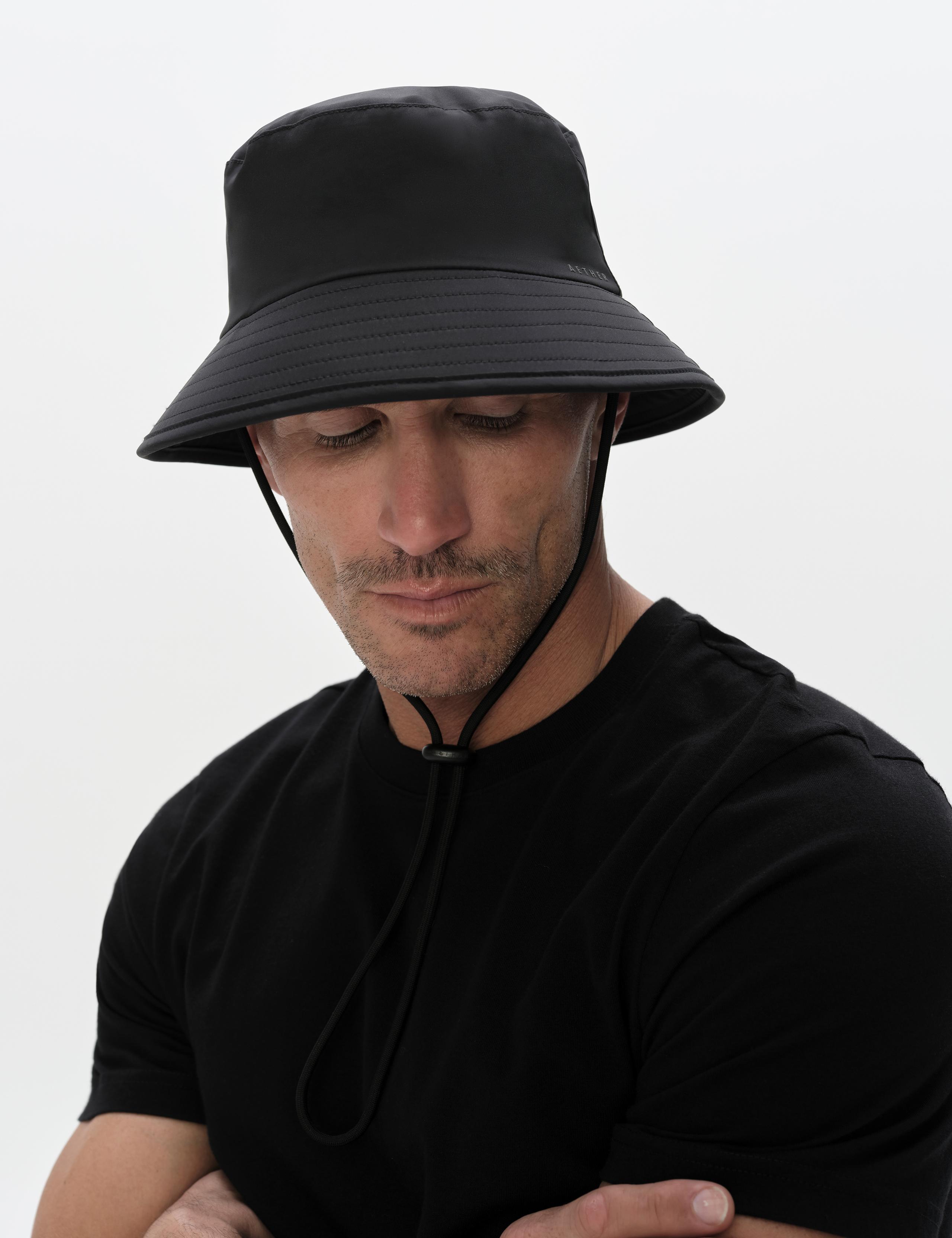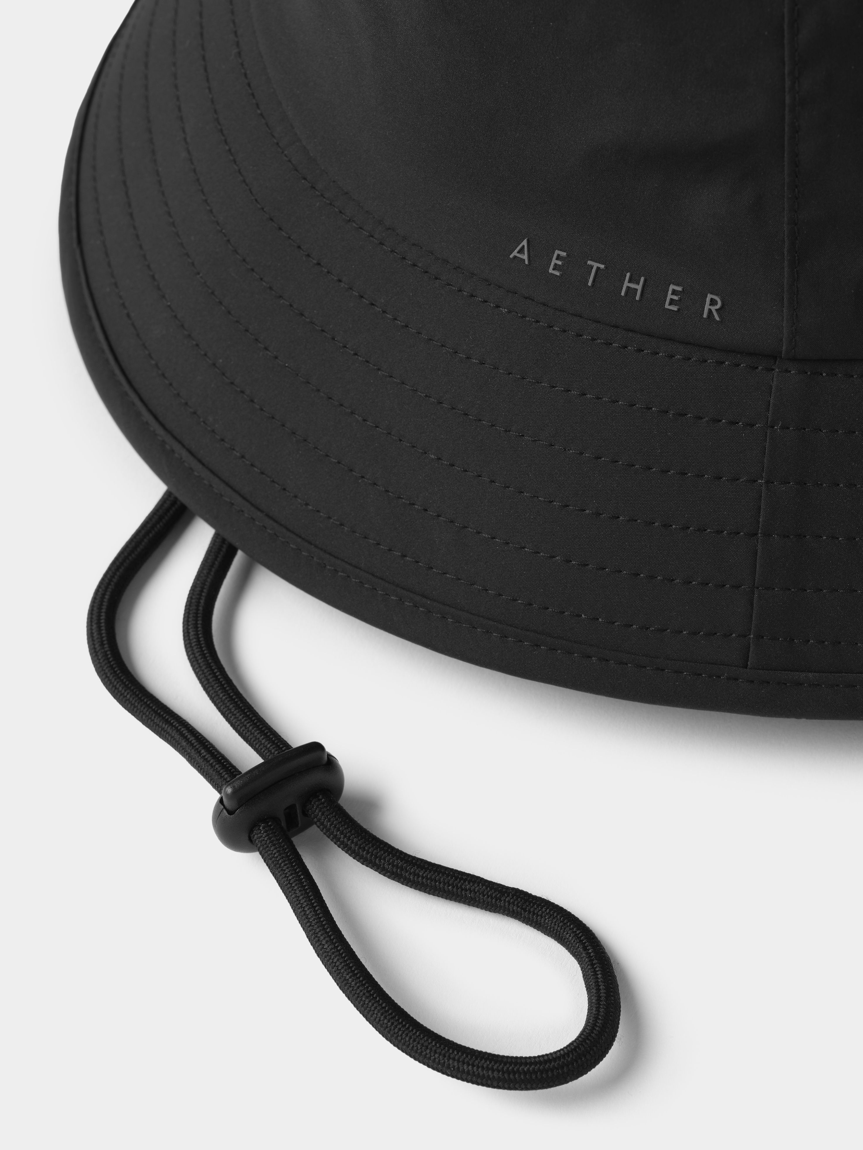 The hat comes paired with a 5mm drawcord fitted with a custom-branded AETHER cord lock. The interior of the Wallace Bucket Hat is trimmed in a padded mesh sweatband.