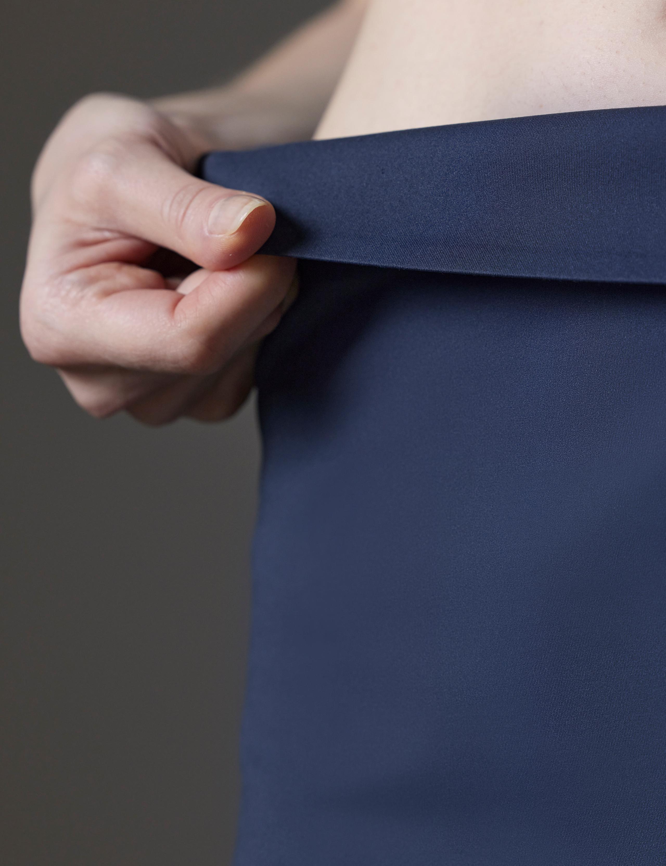 This garment’s fabric or construction allows it to retain its shape and provide exceptional range of motion and comfort.