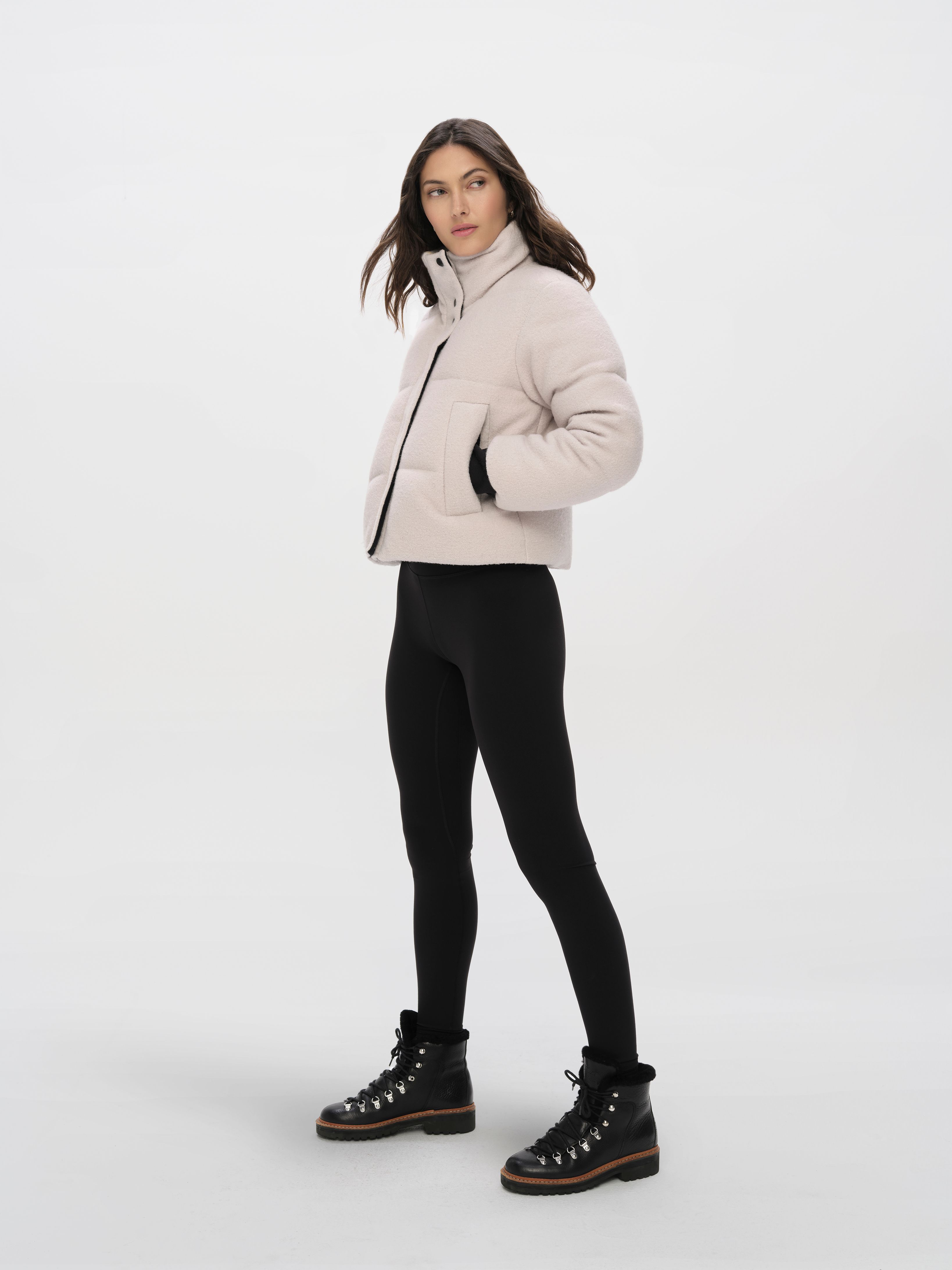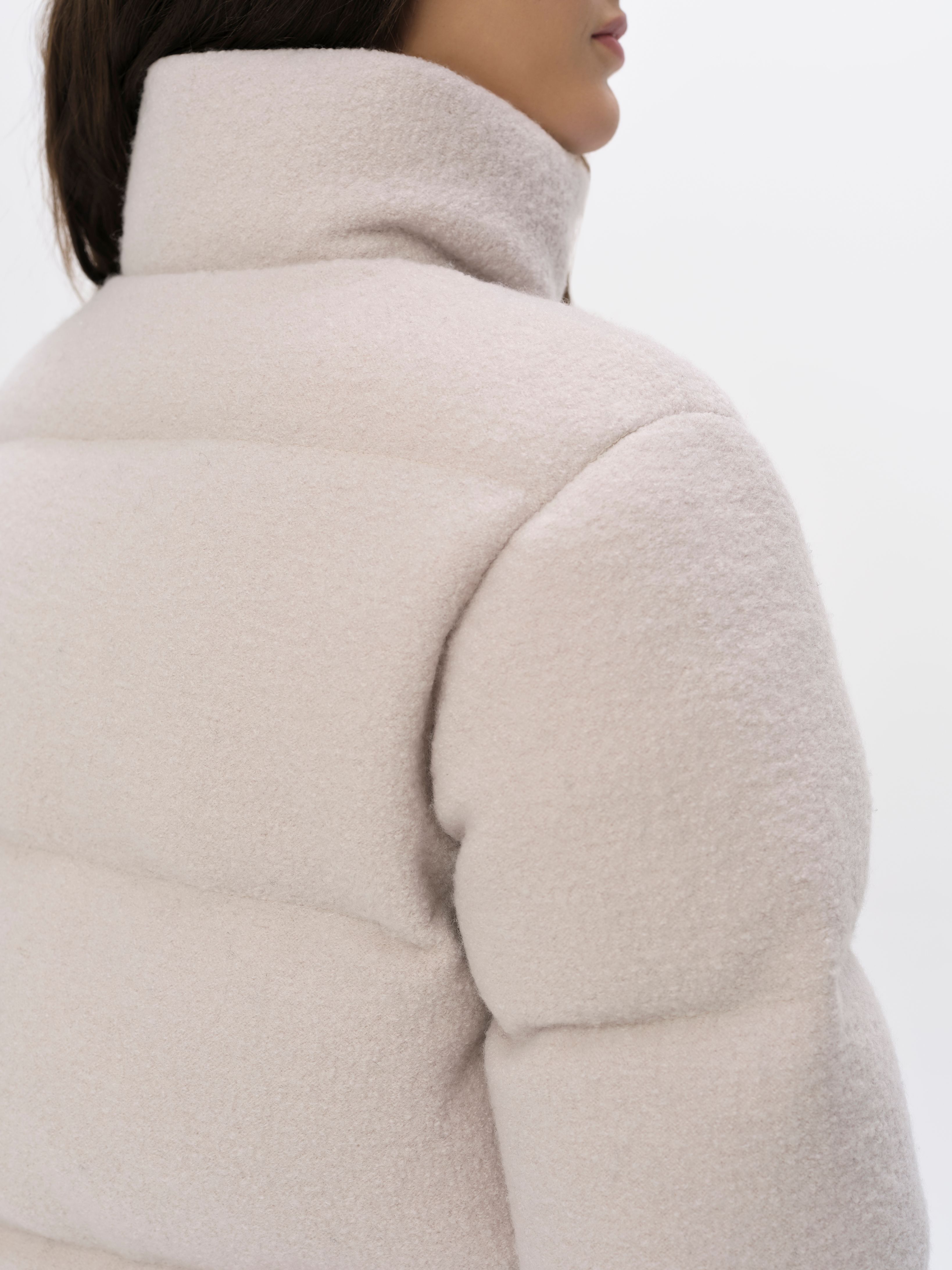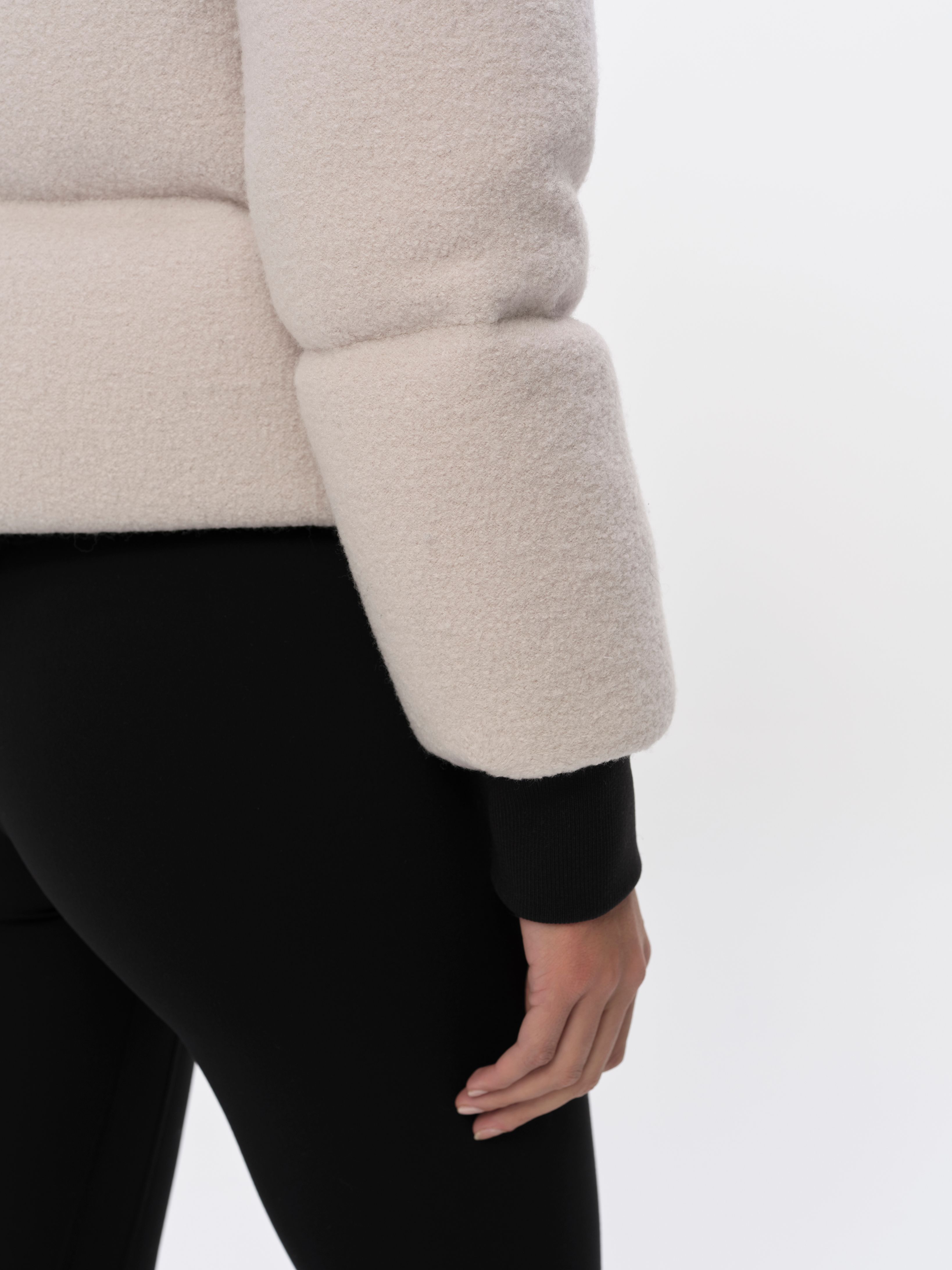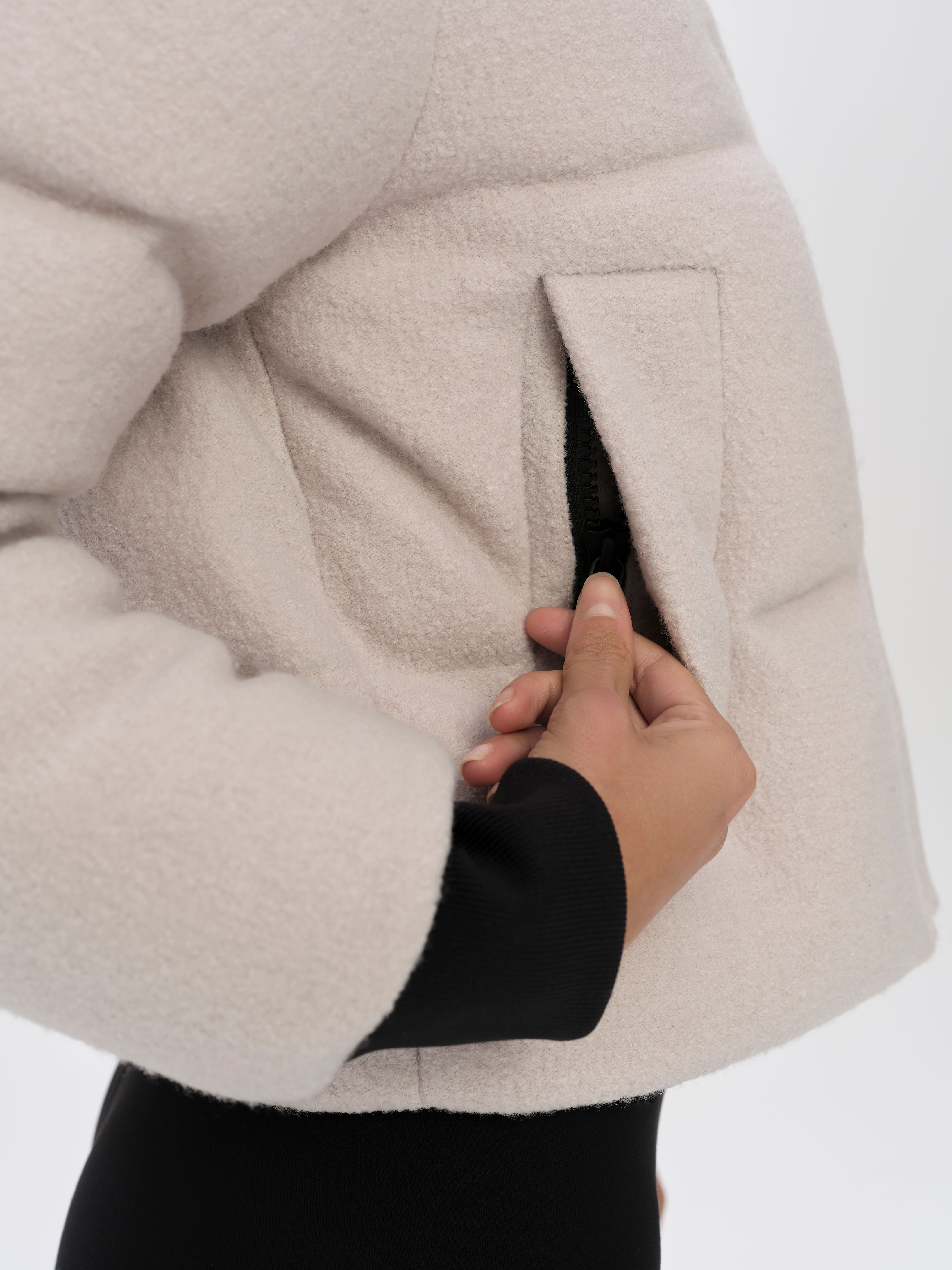 The Aura Puffer Jacket Wool has been outfitted with wide welt hand pockets secured with #8 VISLON® zippers.