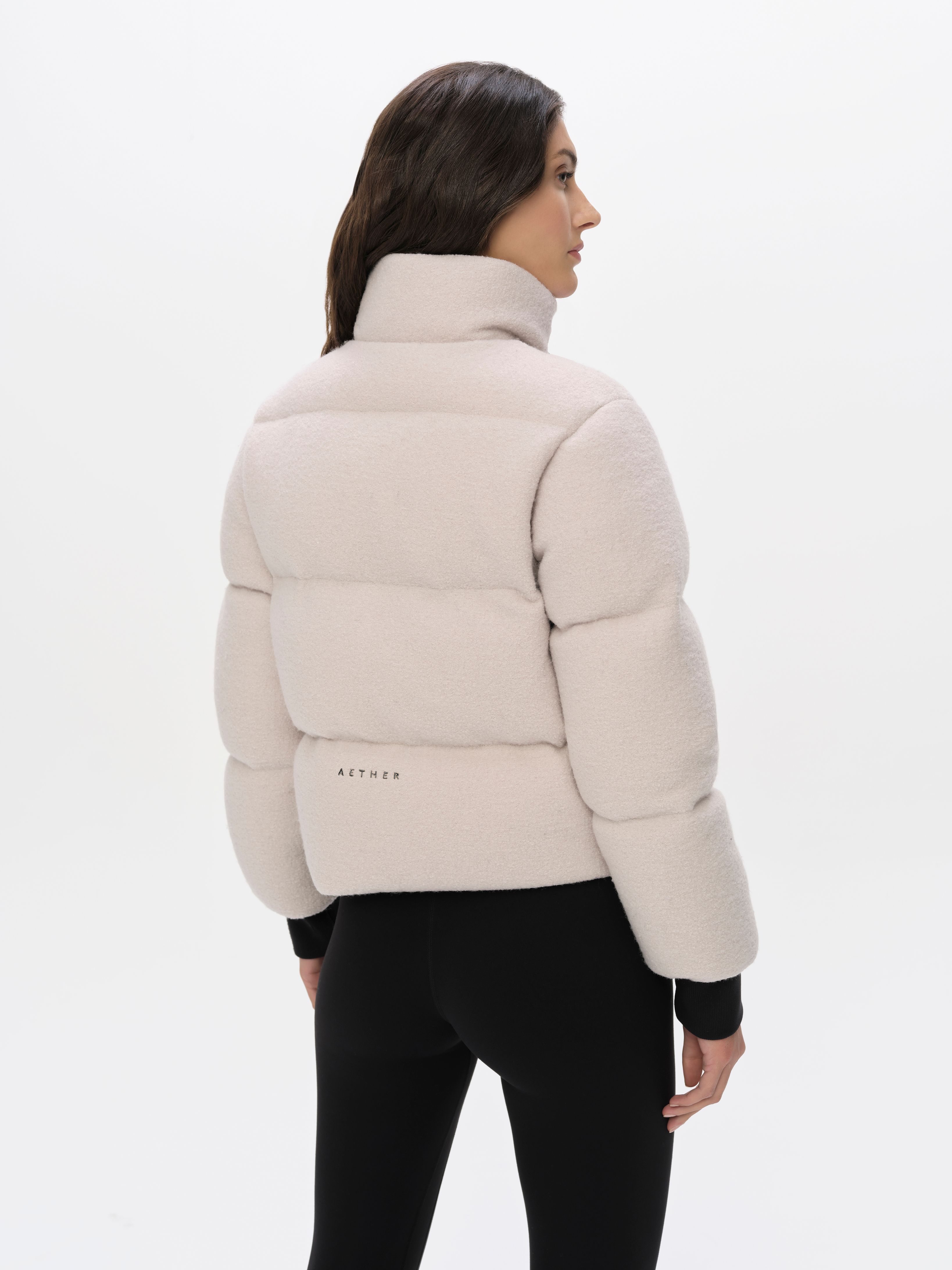 The latest addition to AETHER’s Aura lineup, the Aura Puffer Jacket Wool is a cropped take on our classic puffer that’s now received a major material update. Warm and lightweight, it’s filled with 800-fill-power RENU Recycled Down and benefits from a host of small but meaningful details that collectively speak to AETHER’s design philosophy of creating quietly technical clothing.