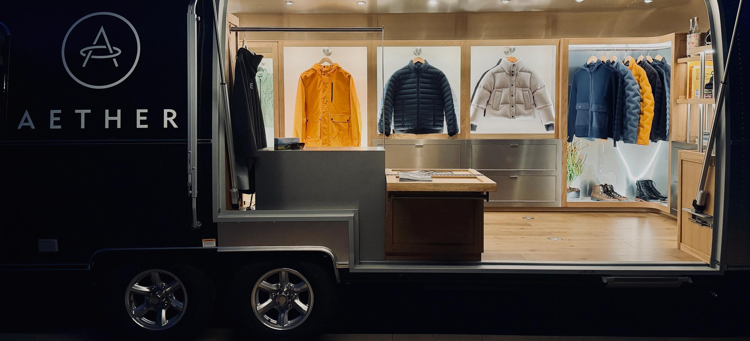 Serving as the brand’s first-ever physical retail space prior to opening its first brick and mortar store in 2013, the original AETHERstream trailer was a roving pop-up shop that spent over-a-decade on the road, crisscrossing the country and making stops in everything from major cities to small mountain towns. In 2024, the custom-built Airstream was involved in a collision and was ultimately deemed a total loss. This unfortunate incident kicked off a more-than-year-long design and fabrication process that would eventually give way to the all-new AETHERstream 2.0.