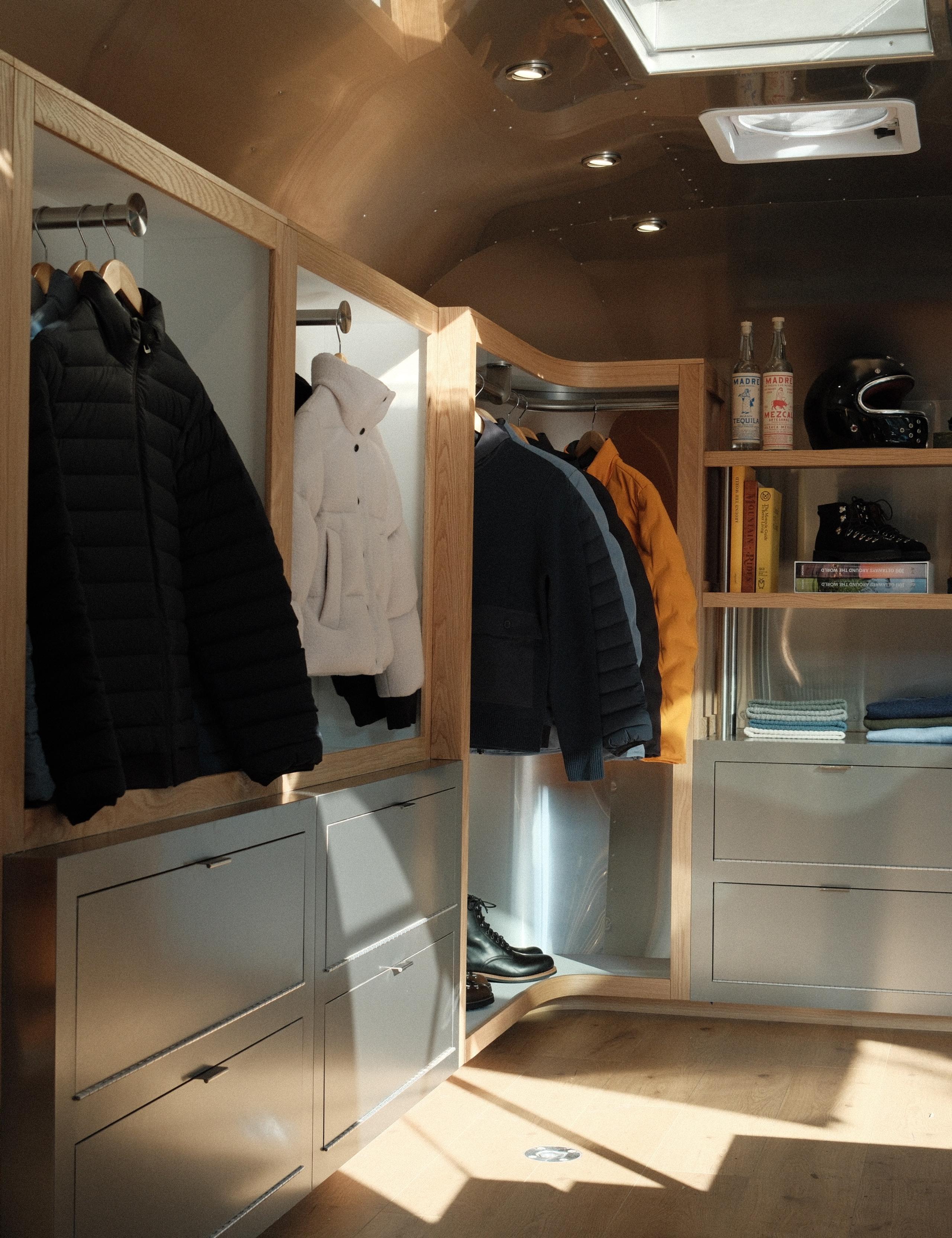 Carrying forward the spirit of its predecessor, the new Airstream trailer was gutted and stripped down to a shell before being custom-built from the ground up. The new build utilizes a combination of oak veneer and hardwood that beautifully balances strength and lightness. This material selection is further elevated via the use of custom LED lighting throughout, along with bespoke stainless steel fixtures and hang bars.