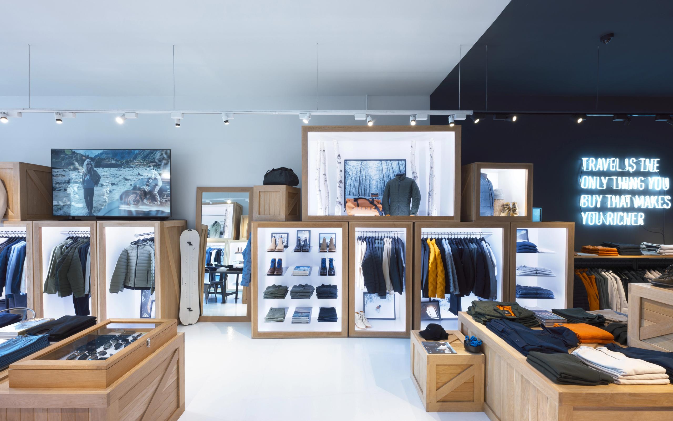 Located in the heart of the La Brea District—just a few blocks away from our main headquarters—AETHERla represents our flagship brick-and-mortar retail space. Also used as a venue for AETHER’s community events and a meetup location for our various group rides and rallies, the store features an aluminum wall inspired by our iconic AETHERstream trailer, and custom LED-lit wooden crates displaying a curated selection of AETHER’s men’s and women’s apparel, footwear, and accessories — along with a handpicked array of gear essentials from third-party brands. Equipped with a fitting room crafted from reclaimed oak boards, the AETHERla store also boasts a bespoke extruded aluminum cash wrap and checkout that echoes the crate design language that we’ve used since opening our original Los Angeles store over a decade ago.