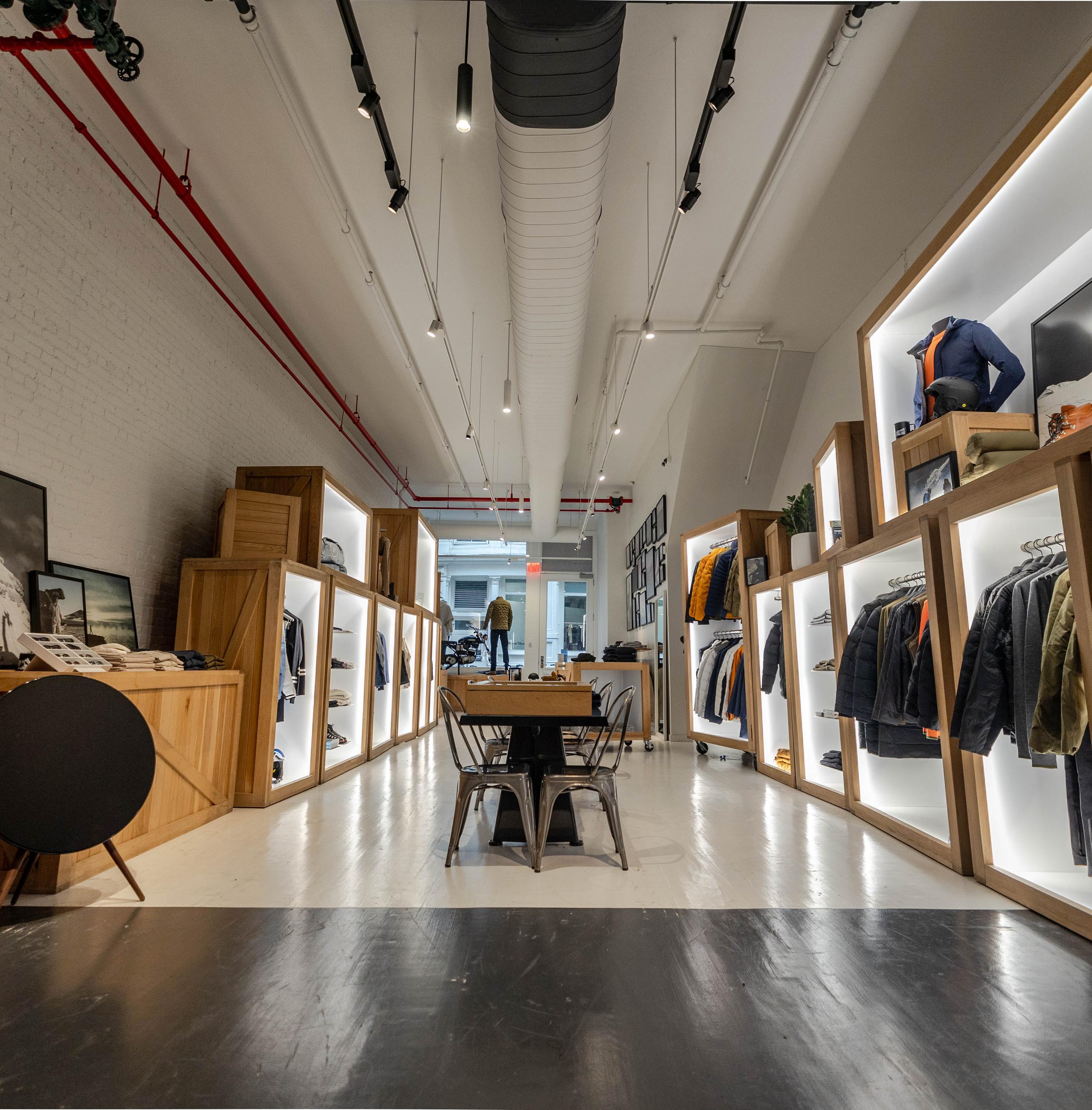 The store design includes custom AETHER crate displays with LED lights that contribute to the defining essence of our physical stores. Our curated AETHERnyc collection features men’s and women’s performance-driven outerwear and outdoor essentials that defy the elements.