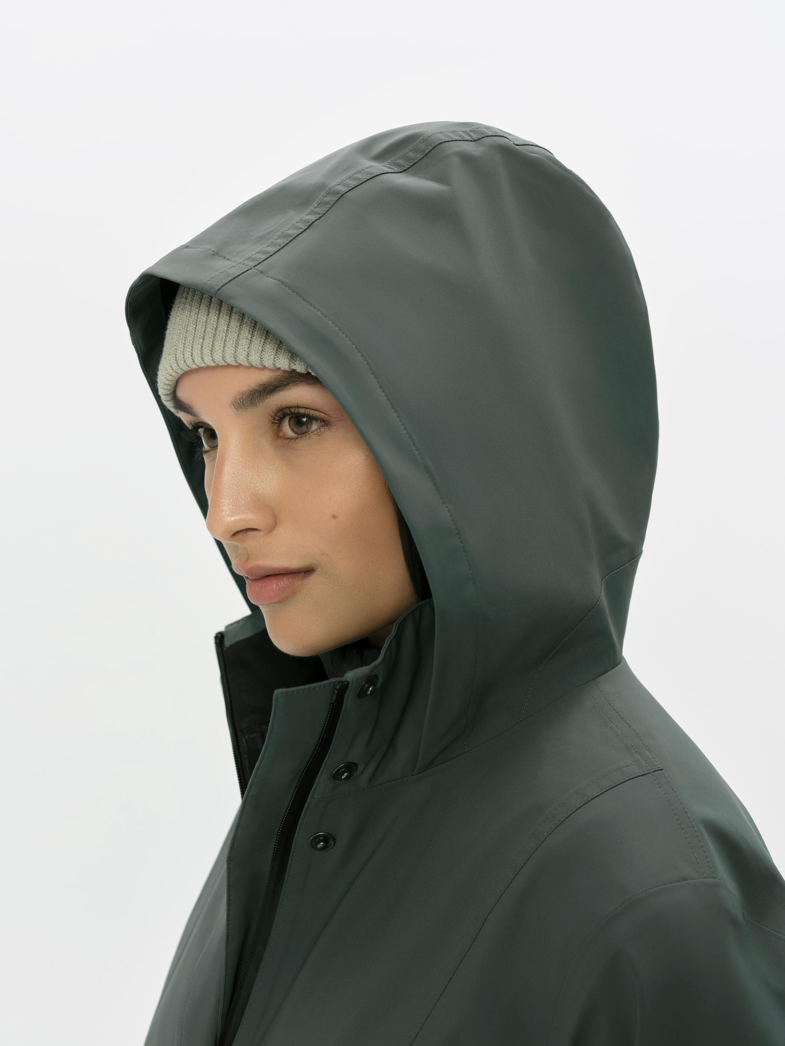 Completely waterproof, this technical take on a parka offers an unmistakably flattering fit.